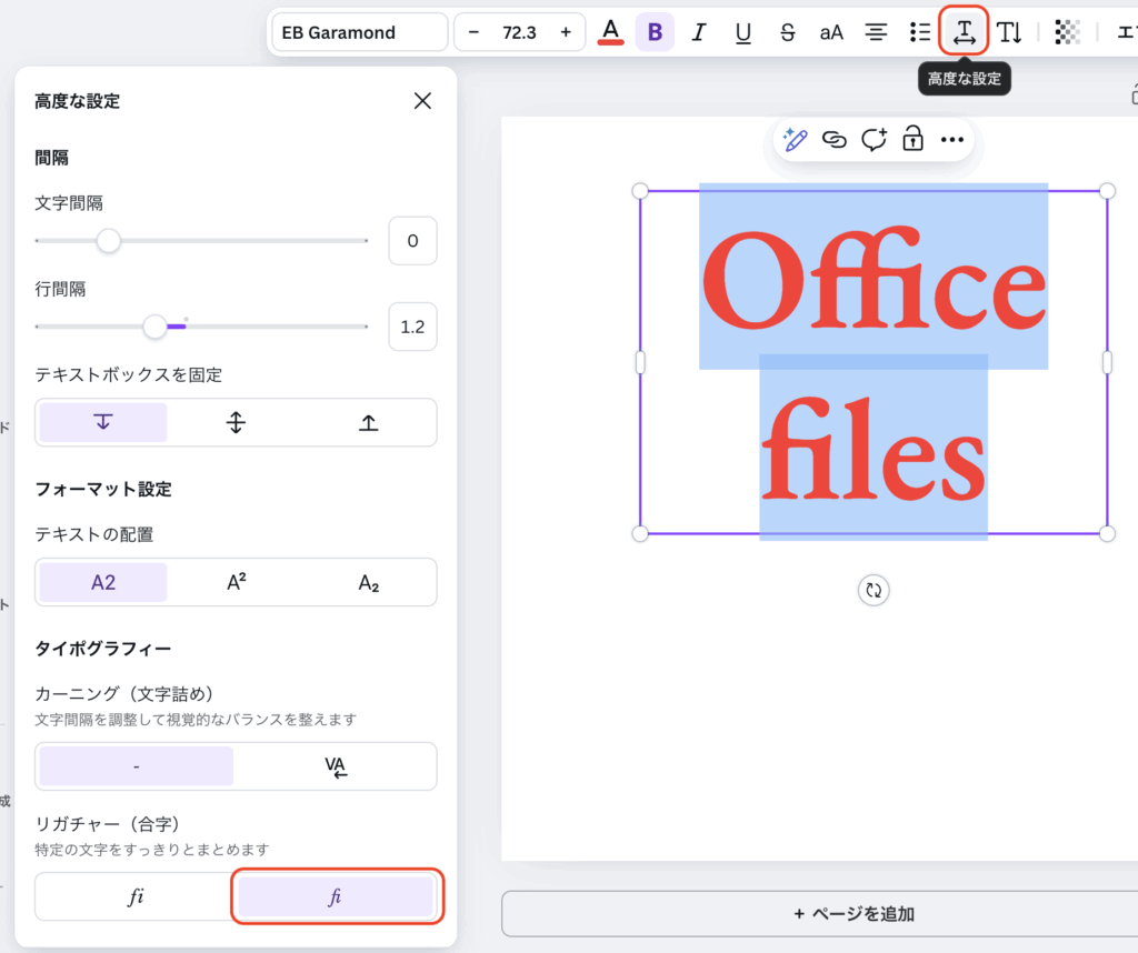 カーニング(文字詰め)と合字が設定できるようになりました。