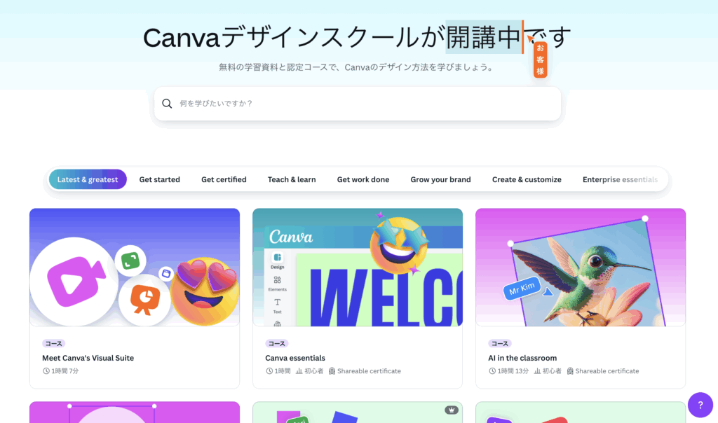 「Canvaデザインスクール」で学習する