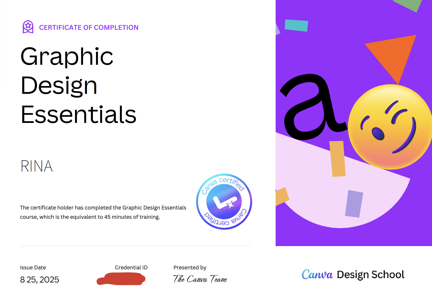 私は英語が苦手なので、翻訳を使いながら、なんとか1つ「Graphic Design Essentials」というコースを修了できました。