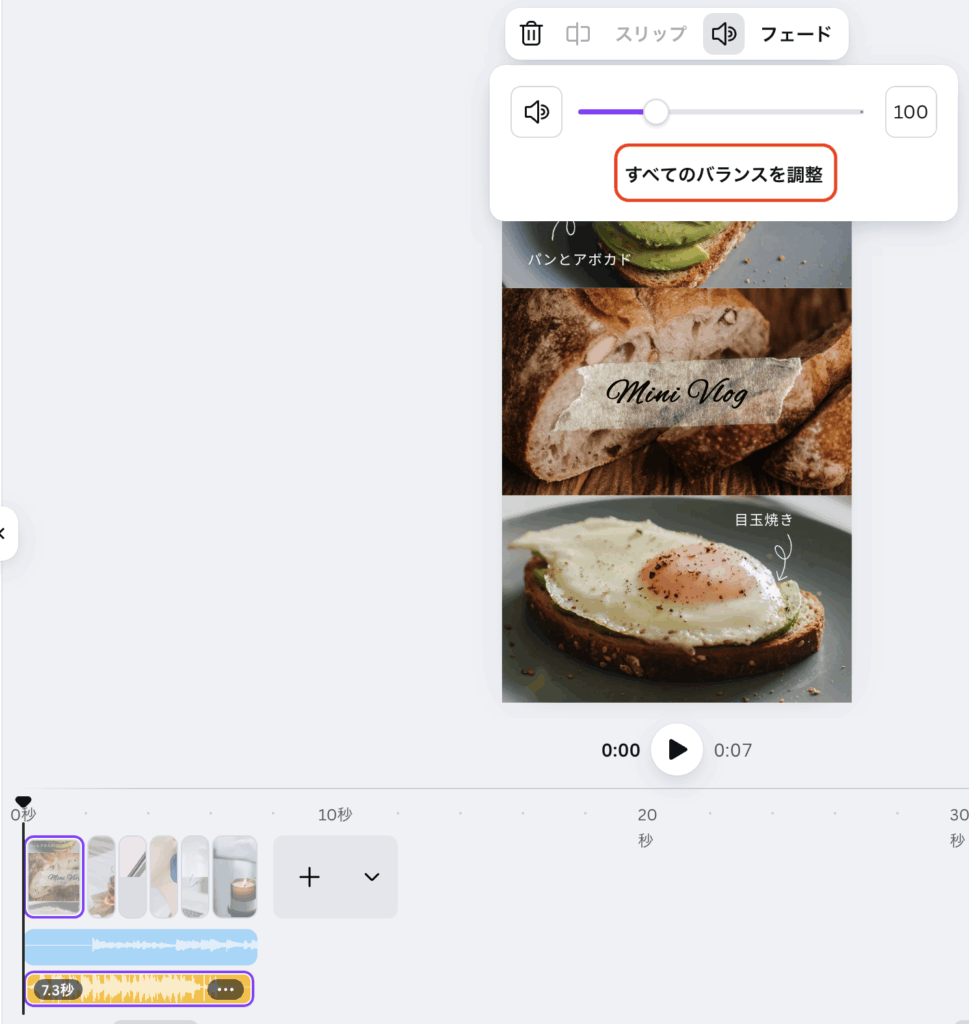 動画のオーディオの「バランス調整機能」を使う