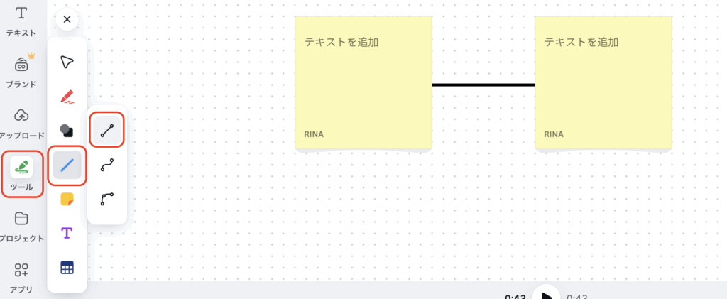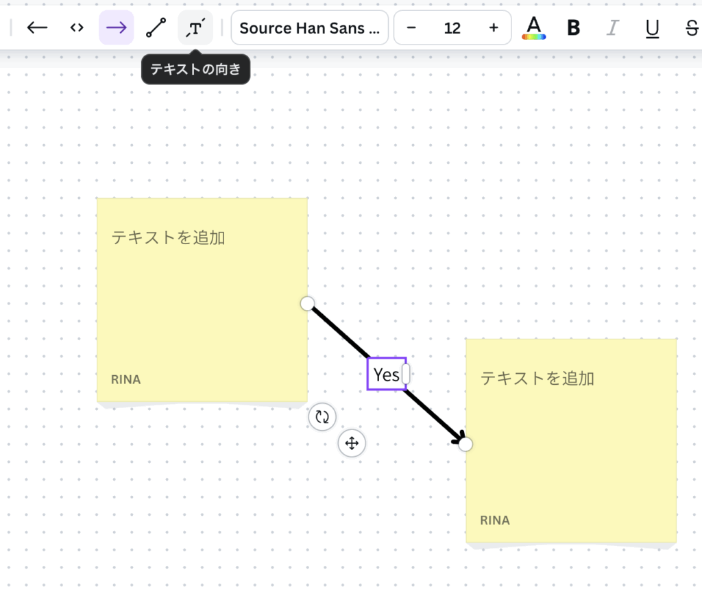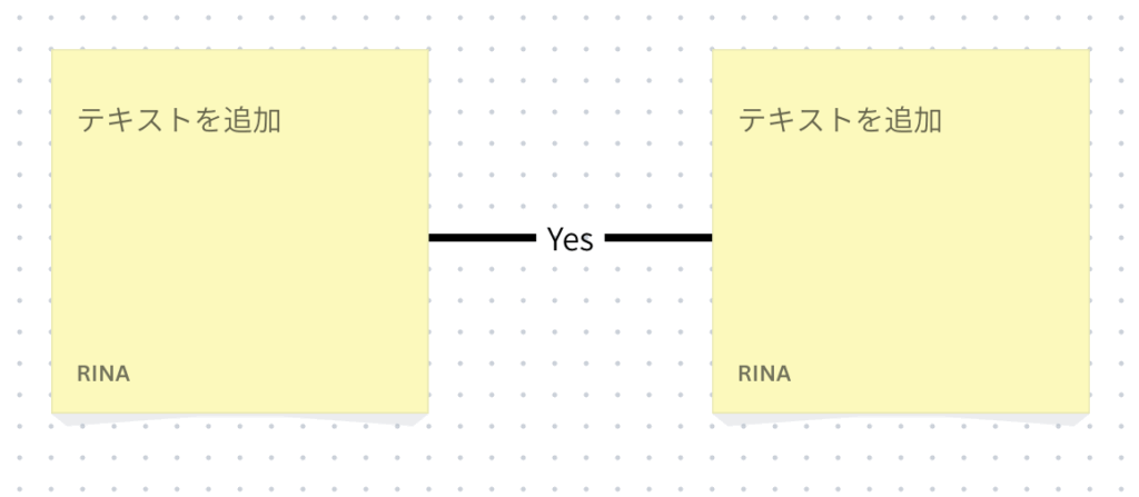 線の先端をドラッグして、2つの付箋をつなぎます。